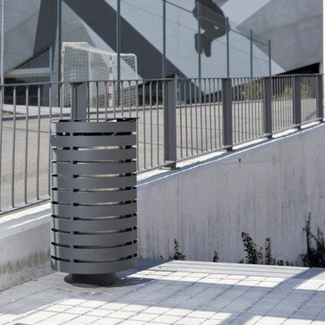 Cette corbeille de rue est aisément repérable pour les usagers qui souhaitent jeter leurs déchets. Elle possède une finition à la peinture au four, avec un thermolaquage. Cette dernière est disponible dans un coloris gris martelé.