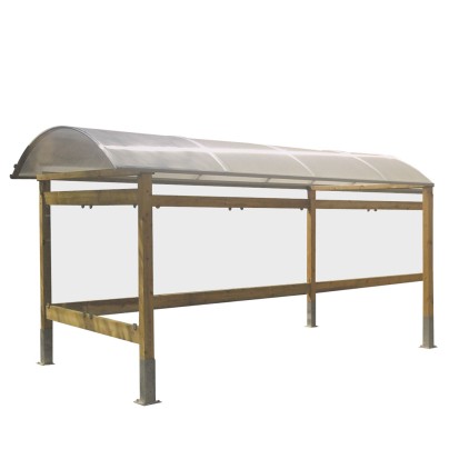 Le toit de l’abri Verignon se compose d’une couverture arrondie avec 2 faces en polycarbonate alvéolaire, traitées contre les rayons UV et pincées entre les arceaux.