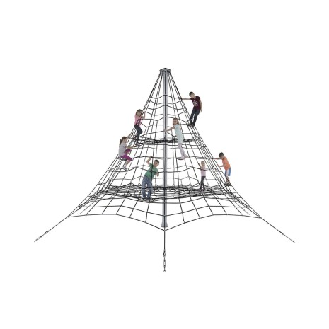 L'araignée, jeu à grimper est un filet de pyramide en corde armée solide, d’un diamètre de 18 mm. Elle est équipée de connecteurs en aluminium. Son pilier central est galvanisé à chaud et fait un diamètre de 200 cm.
