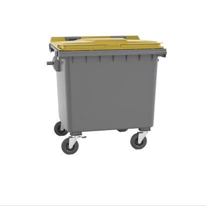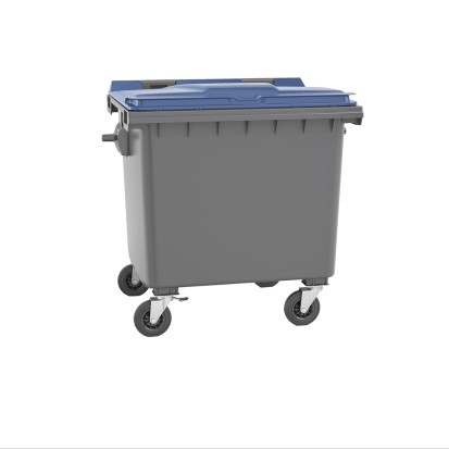 Bac conteneur latéral roulant 1 000 L en PEHD avec tourillons 4 roues