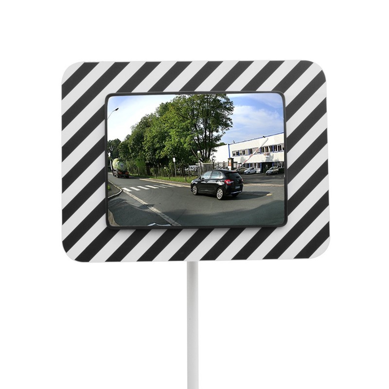 Le miroir de route est conforme pour le contrôle et la surveillance sur voie publique. Il possède un cadre réalisé en composite aluminium, d’une épaisseur de 3 mm.