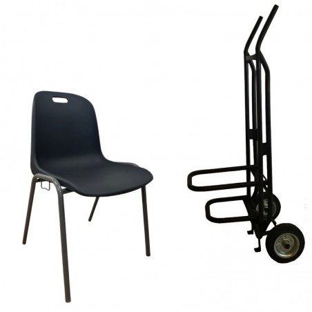 Le diable de manutention est en acier avec une finition peinture noire. Vous pouvez transporter entre 10 et 15 chaises selon les modèles.