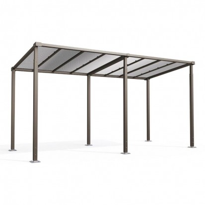 Toiture : traverses en tubes acier 60 x 60 mm, panneaux en polycarbonate alvéolaire épaisseur 10 mm traité anti-UV