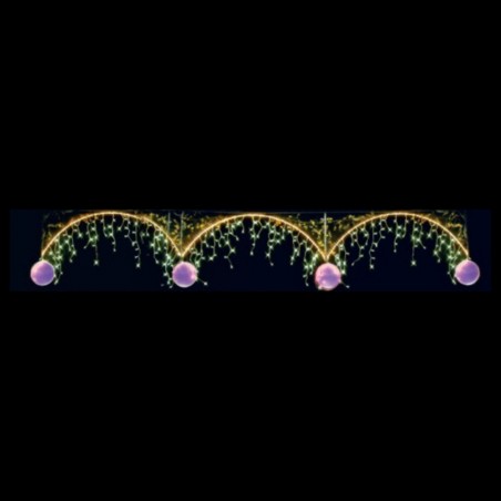 La traversée de rue Arcades lumineuses est confectionnée en France. Cette décoration bénéficie d'une garantie de deux ans. Avec des dimensions de 500 cm de largeur sur 93 cm de hauteur, un poids de 13 kg et une puissance de 40 w. La traverse lumineuse est réalisée à partir de guirlande de Led ce qui la rend particulièrement économique et écologique, respectueuse de l'environnement.