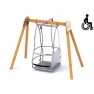 Découvrez notre balançoire pour fauteuil roulant, conçue pour être utilisée par des enfants aux capacités différentes, leur offrant une expérience de jeu autonome. Elle est exclusivement destinée aux utilisateurs en fauteuil roulant. Les enfants, dotés d'une certaine capacité physique, peuvent accéder à la plateforme par une rampe et se balancer en toute autonomie en utilisant les cordes. La balançoire est équipée d'un système de blocage pour assurer la sécurité pendant l'accès.