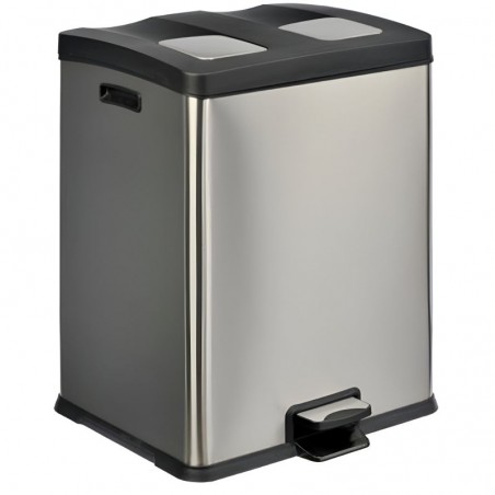 La poubelle à pédale est équipée de 2 bacs de 30 litres chacun pour le tri sélectif des déchets en intérieur. Composée d'un couvercle en plastique avec système de fermeture amortie et de poignées intégrées. Sa grande capacité en fait un allié du tri sélectif dans les espaces collectifs.