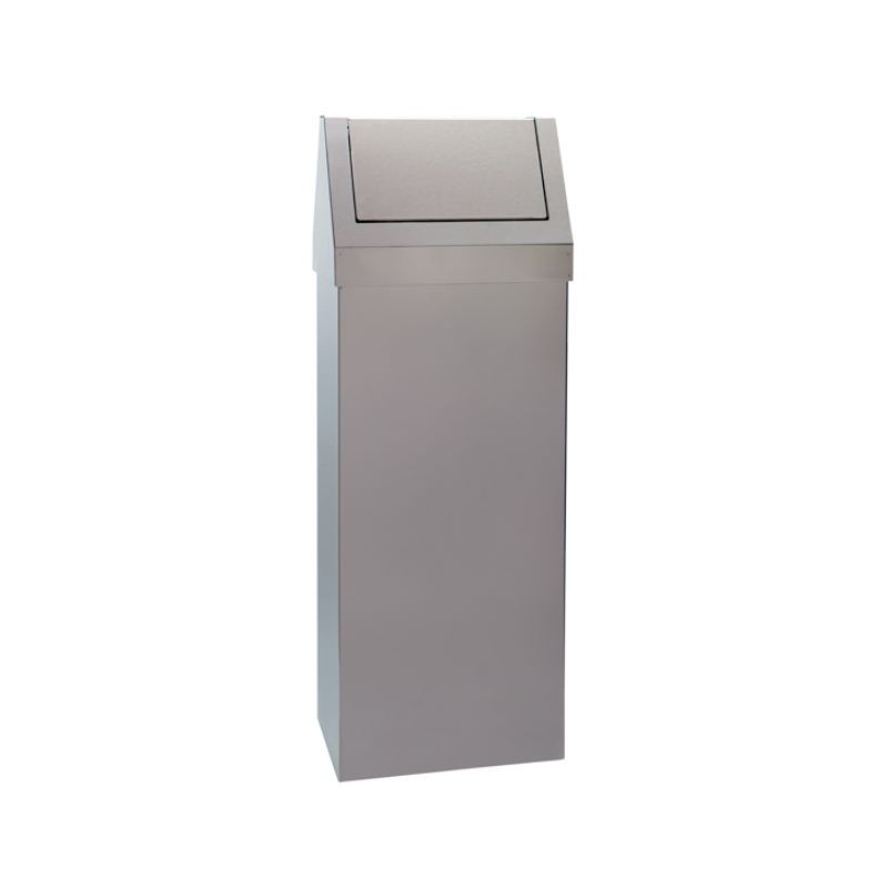 La poubelle couvercle basculant est en acier inoxydable AISI 430, finition brillant. La trappe à bascule, permet un accès simple et rapide pour jeter les déchets. Grâce à ce mécanisme simple et sa grande capacité de 50 litres, elle convient pour les lieux à forte fréquentation. Cette poubelle est idéale pour les locaux des collectivités et des entreprises.