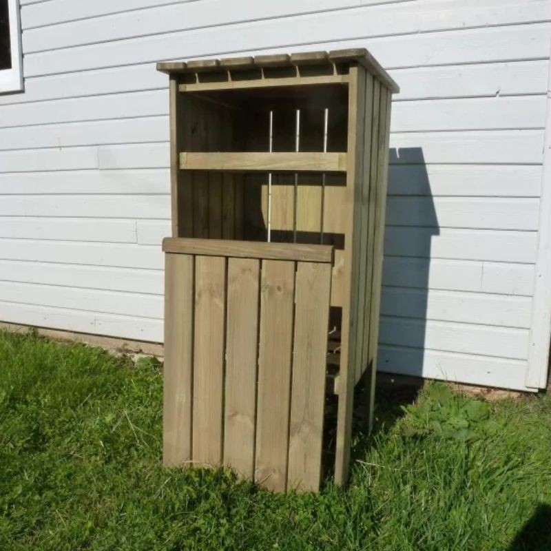 La poubelle extérieure en bois certifié PEFC est traitée autoclave classe IV pour une durabilité optimale. Son ouverture étroite et son couvercle fixe limitent les dépôts volumineux. Pratique, elle dispose d’une façade amovible et d’un support de sac. Sa capacité de 100 L la rend idéale pour les parcs, jardins, aires de repos ou campings.