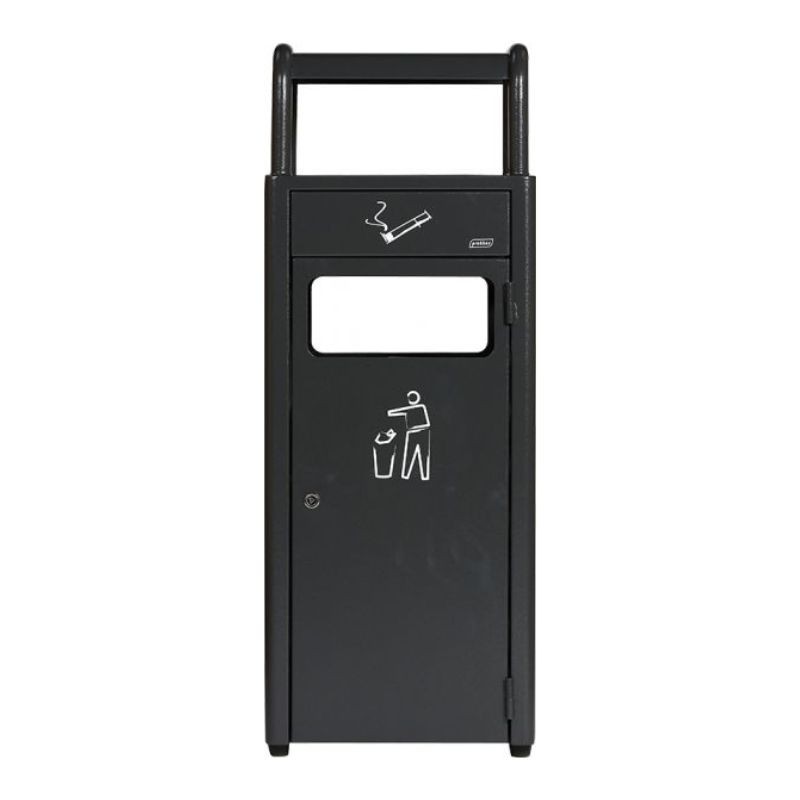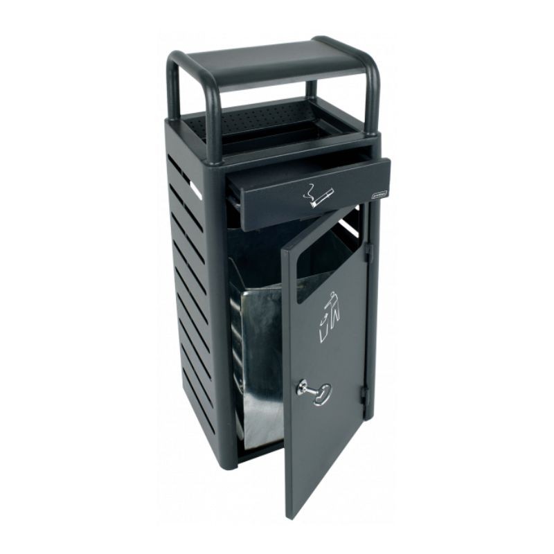 La poubelle cendrier extérieur est disponible en 2 modèles : poubelle 20 L / cendrier 2,3 L ou poubelle 43 L / cendrier 5,9 L. L'entretien est simplifié, les bacs intérieurs sont amovibles et la porte avant de la poubelle se ferme à clé. Accessible des 2 côtés, elle facilite la gestion des déchets et des mégots de cigarette. Idéale pour les collectivités et les professionnels.