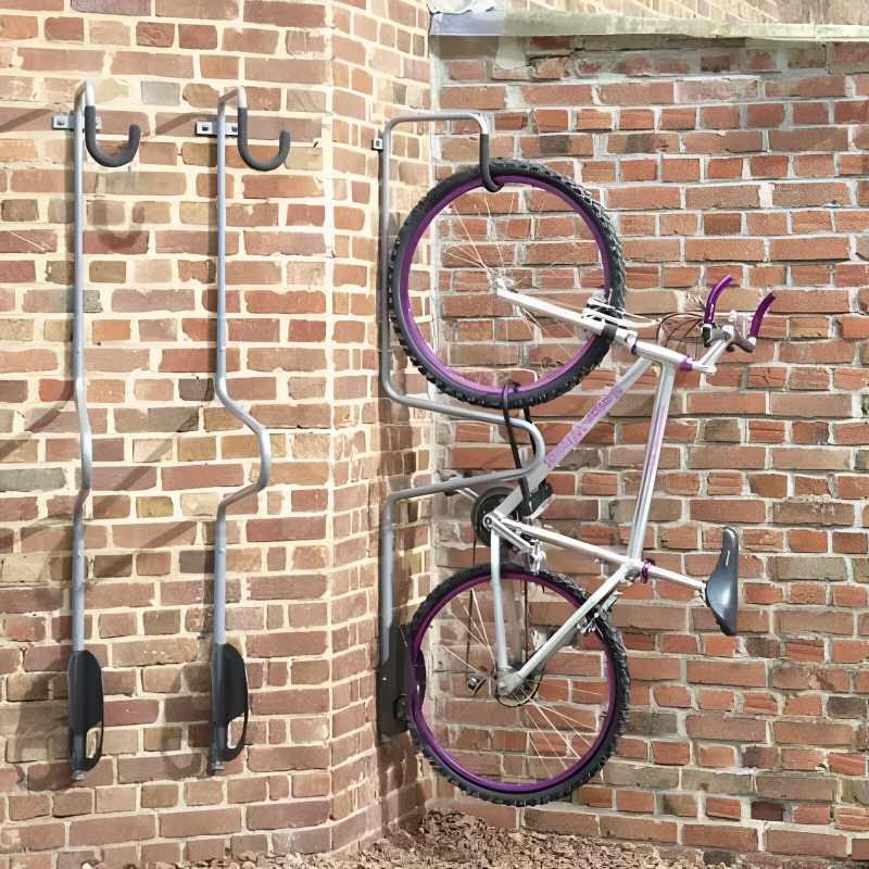 Ce support permet de ranger un vélo à la verticale afin de libérer de l’espace au sol. Son crochet gainé protège le cadre lors de la mise en place du vélo. Il offre également la possibilité d’ajouter un antivol pour assurer une sécurisation efficace du deux-roues.