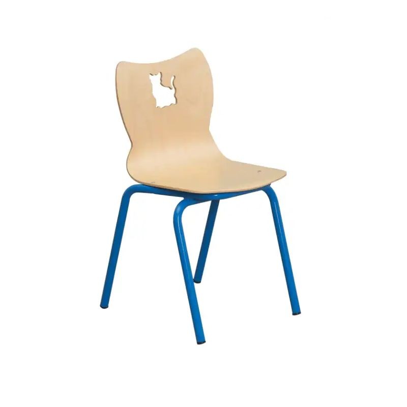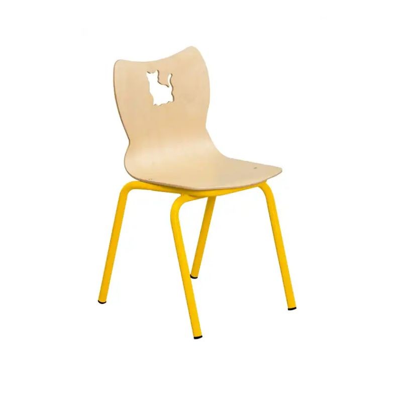 Cette chaise maternelle ravira les plus petits avec son motif chat sur le dossier. La coque en lamellée de hêtre est fixée sur un piétement en acier revêtu d'une peinture époxy disponible dans de nombreux coloris. Certifié PEFC et NF EN1729, cette chaise d'école confortable et originale est un modèle fiable et durable pour équiper les salles de classe.