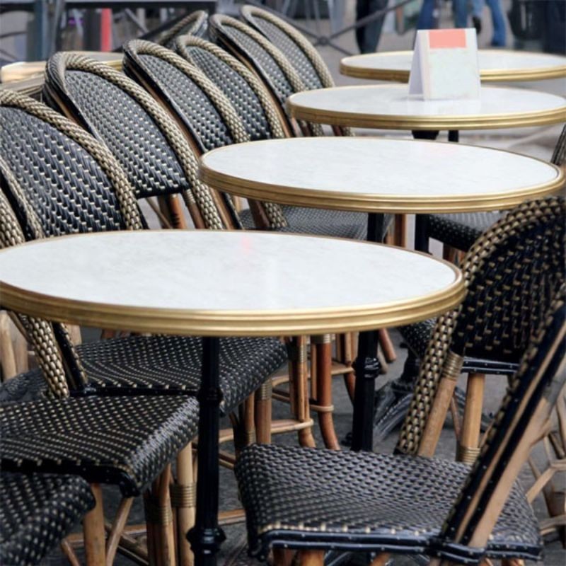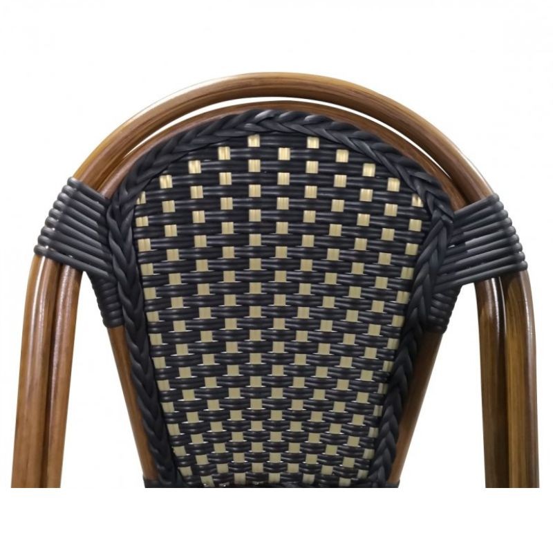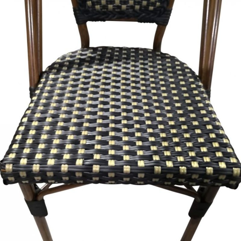 La chaise bistrot empilable associe une structure en aluminium effet bambou à une assise et un dossier en rotin synthétique tressé. Légère et résistante, elle est parfaitement adaptée à une utilisation extérieure en terrasse de café, restaurant ou glacier. Modèle incontournable du secteur CHR, elle est appréciée pour son confort d’assise et sa praticité au quotidien. Empilable jusqu’à 10 pièces, elle est proposée en 3 coloris.