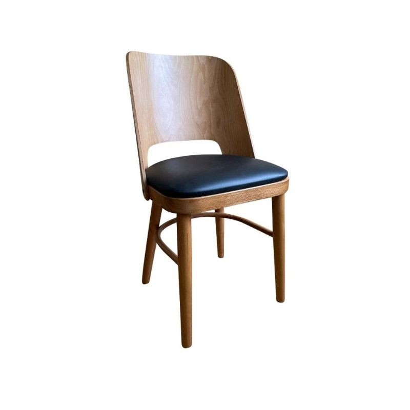 Chaise de restaurant bois et vinyle noir
