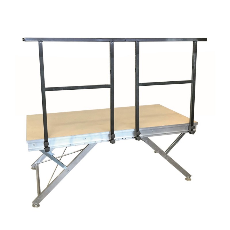 Plateau bois multiplis épaisseur 18 mm et d’un cadre en profilé alu à double rainurage permettant l’assemblage facile et la fixation d’accessoires (garde-corps, bardages…)