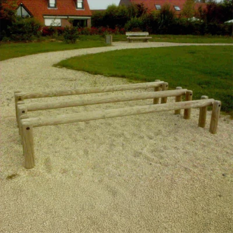 Les barres à ramper pour aire de sport d'extérieur sont un agrès sportif composé de 3 éléments en bois certifié PEFC et CTB-B+. Résistant à un usage intensif en extérieur grâce au traitement autoclave classe IV certifié, cet équipement est conforme à la normes NF EN 16630-2015 est convient ainsi aux collectivités.