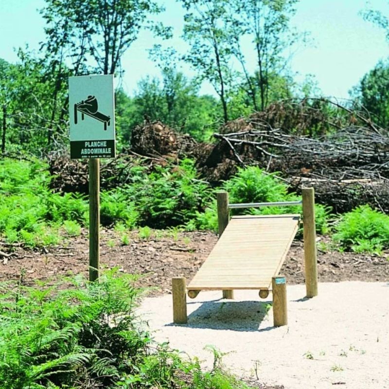L'équipement sportif extérieur planche abdominale permet de renforcer la sangle abdominale et le gainage, contribuant à l’amélioration de la posture et de la condition physique. Conçu et fabriqué en France en bois PEFC, cet agrès bénéficie d’un traitement autoclave classe IV lui assurant une excellente tenue dans le temps. Conforme à la norme NF EN 16630-2015, il répond aux exigences des équipements sportifs pour collectivités. Panneau parcours de santé vendu séparément.