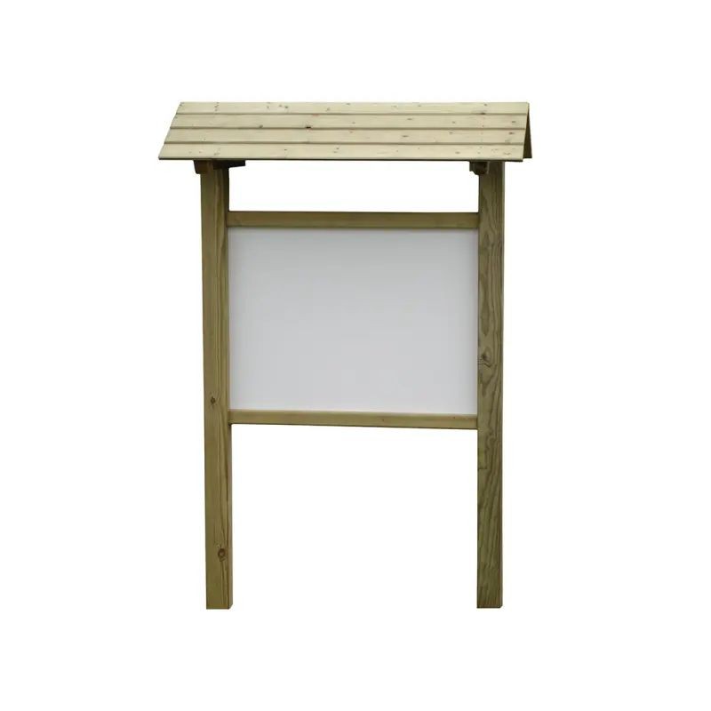 Le panneau d’affichage Turin avec toit permet de diffuser des informations en extérieur tout en les protégeant des intempéries. Sa structure en pin traité autoclave classe 4 assure une bonne résistance dans le temps. Doté d’une surface d’affichage simple face en panneau PVC Komacel, il peut accueillir de 8 à 18 feuilles A4 selon le modèle. Son design en bois s’intègre facilement dans les parcs, espaces publics et environnements naturels.