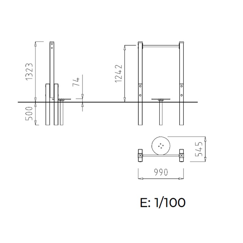 Conforme à la norme EN 16630. Ne nécessite pas de revêtement de sol amortissant selon le test HIC de la norme EN 1176.